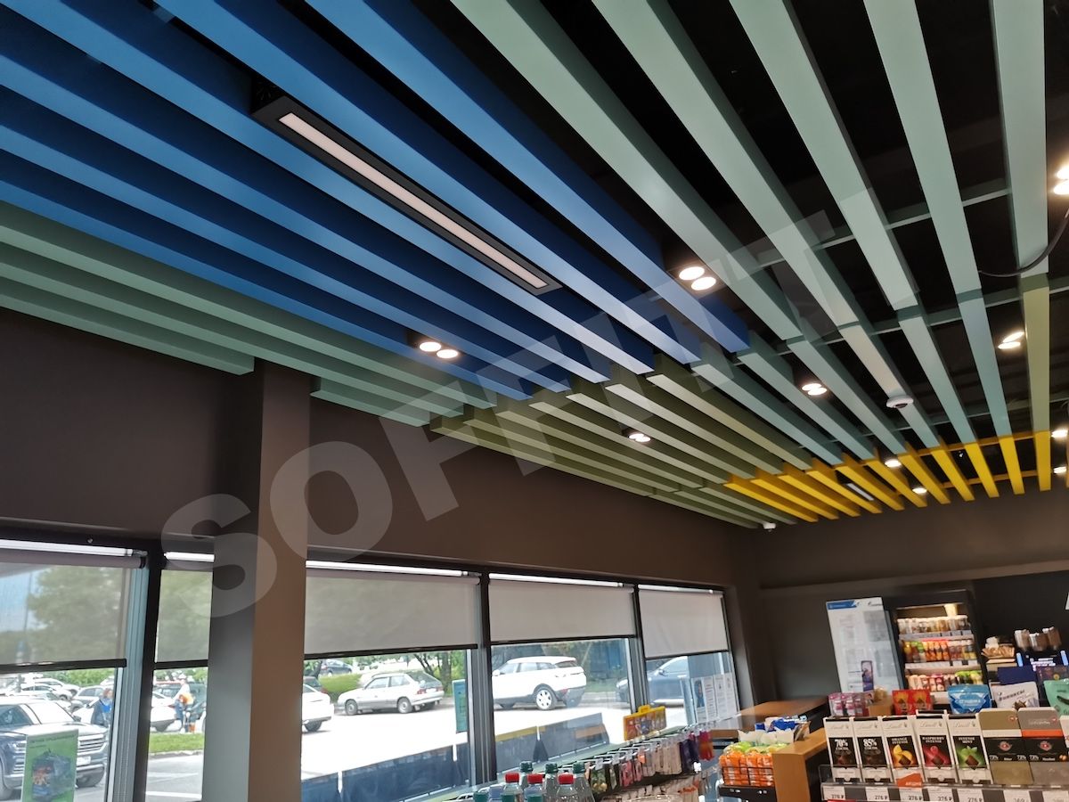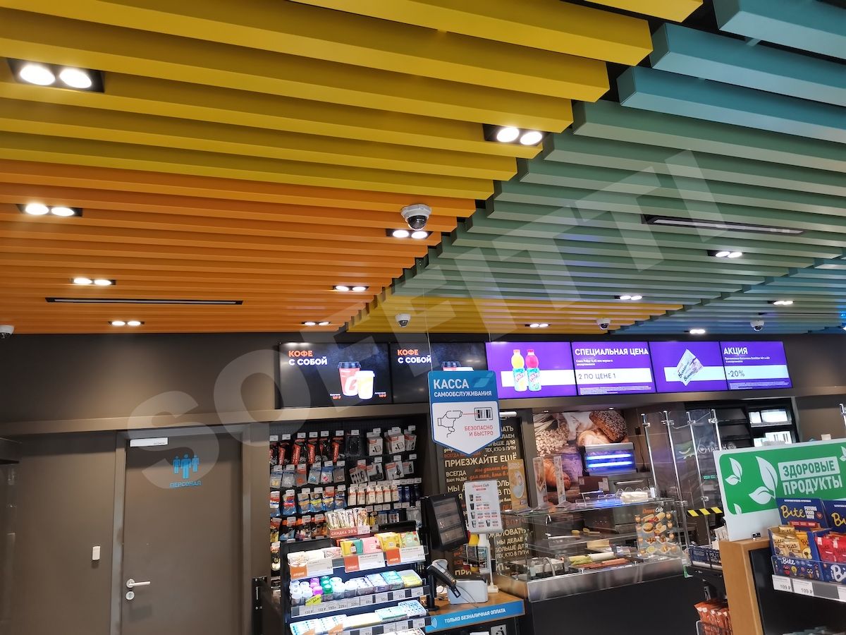 Подвесной кубообразный реечный потолок (или в народе - «кубота») представляет собой систему реек прямоугольного сечения, расположенных параллельно друг другу на определенном расстоянии (с зазором). Рейки могут располагаться вертикально или горизонтально. Кубота в последние годы стала очень популярным дизайнерским решением в оформлении потолочного пространства. Попробуем разобраться, что же послужило росту такой популярности.